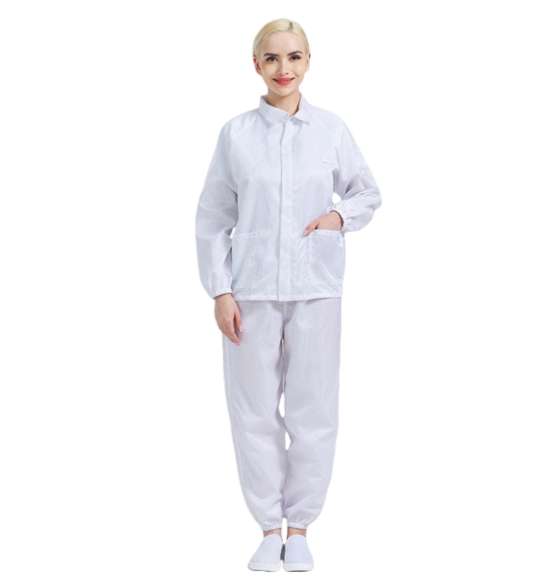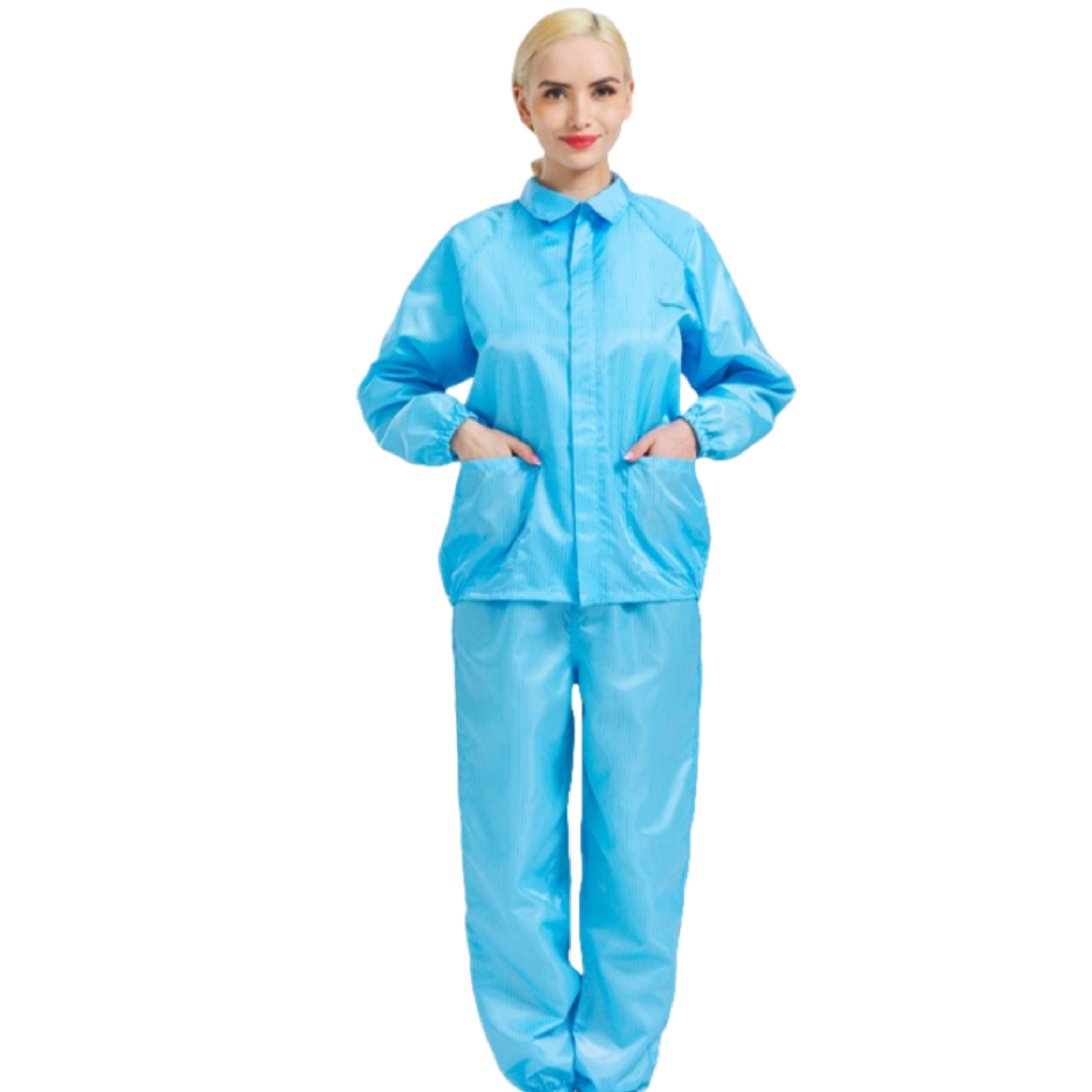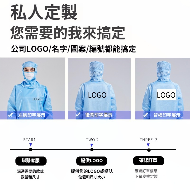 2.根據無塵室級別需求提供多款式選擇,袖口與褲管採雙層結構設計,內層嵌織導電纖維,高效防塵、防靜電。