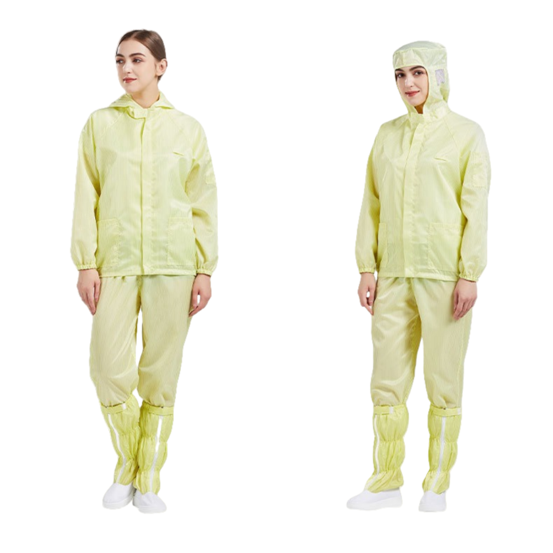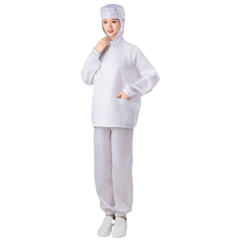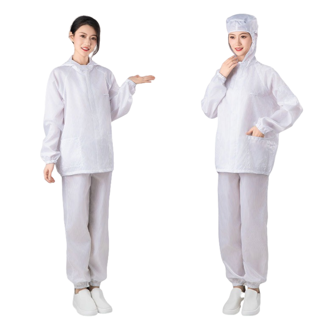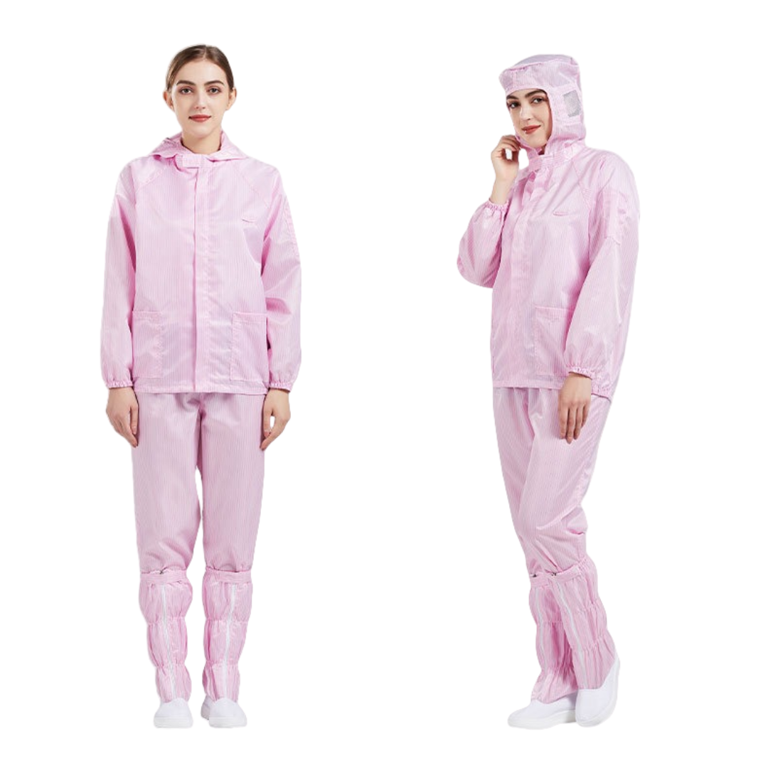 2.根據無塵室級別需求提供多款式選擇,袖口與褲管採雙層結構設計,內層嵌織導電纖維,高效防塵、防靜電。